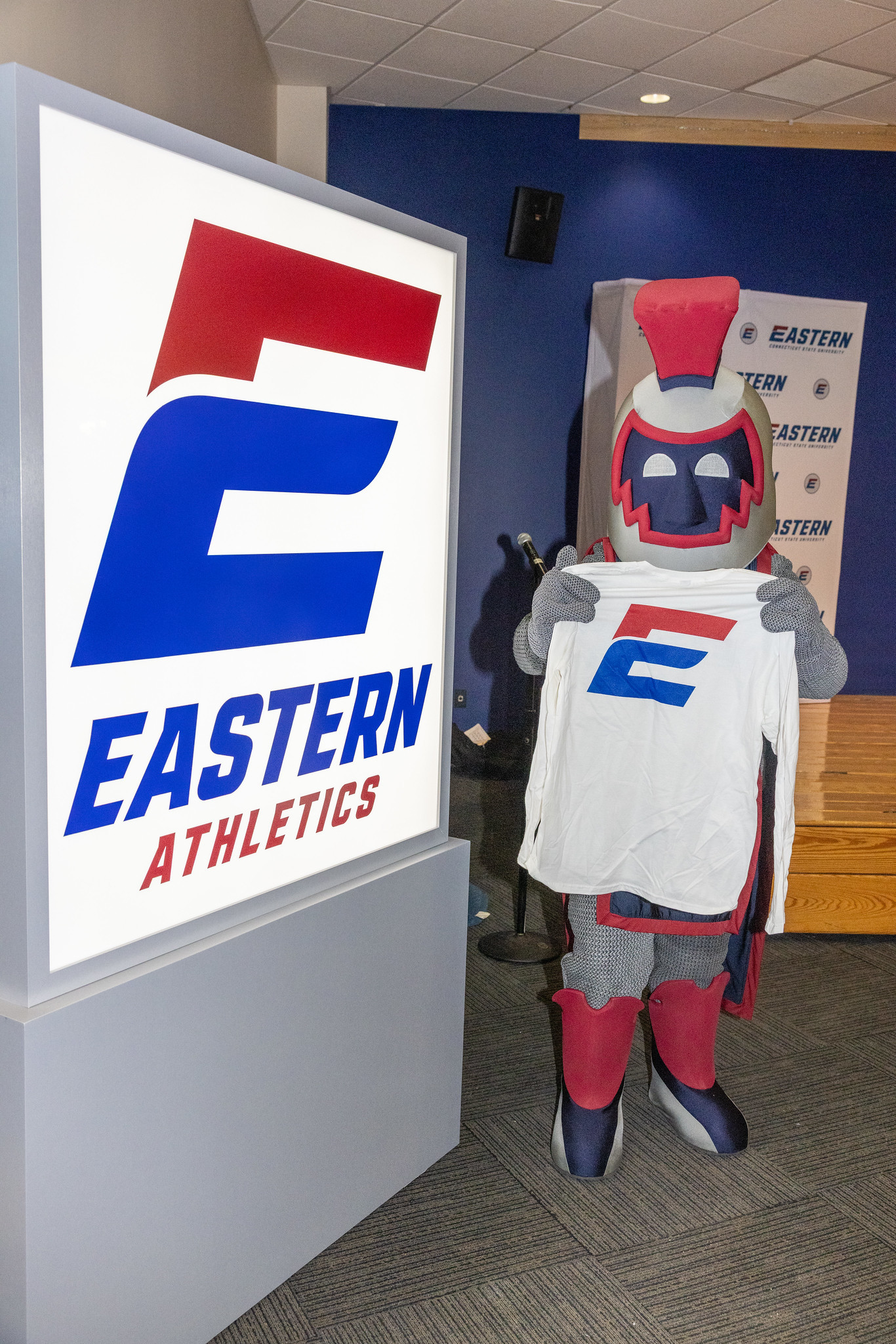 Willimantic, CT (02/02/2026) — Eastern Connecticut State University's campus community came out in full force on Jan. 29 to celebrate an exciting new chapter for Eastern Athletics. Hundreds of students, faculty, and staff packed the Student Center for the unveiling of Eastern's new athletics logo - and the chance to leave with fresh Warrior swag.