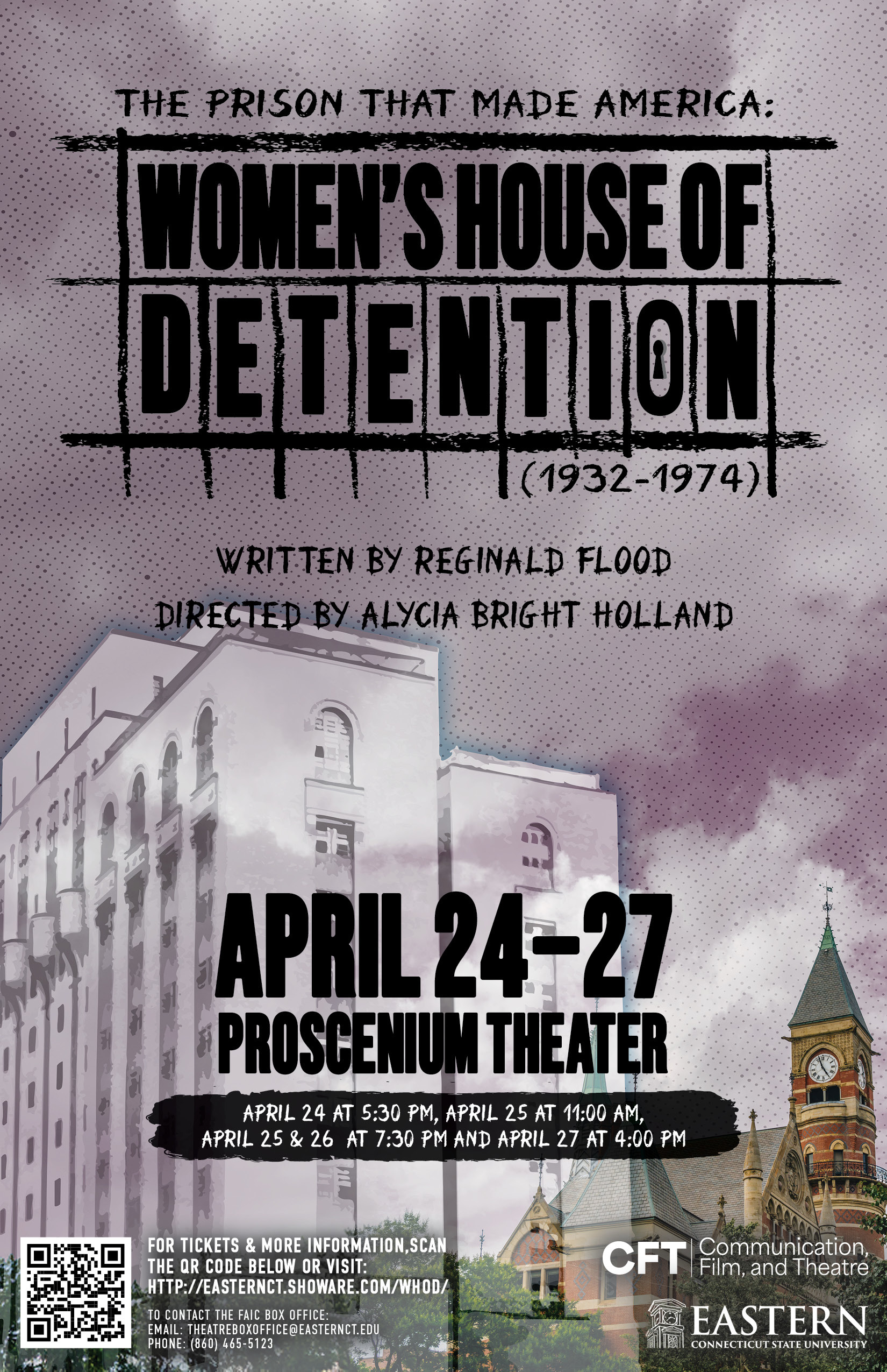 Willimantic, CT (04/17/2025) — Eastern Connecticut State University's upcoming mainstage theatre production, "The Prison that Made America: Women's House of Detention (1932-1974)," will show April 24-27 in the Proscenium Theatre of the Fine Arts Instructional Center (FAIC). Written and directed by Profesors Reginald Flood and Alycia Bright-Holland, the new play takes viewers behind the walls of the historic Women's House of Detention in Greenwich Village, New York - a neighborhood where Bohemian rebellion and queer culture flourished.