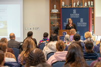 Keynote speaker Beth Regan '77, chairwoman and justice of the Mohegan Tribal Council of Elders and an Eastern alumna, spoke with great reverence for her ancestors and those of all Native American "relatives."