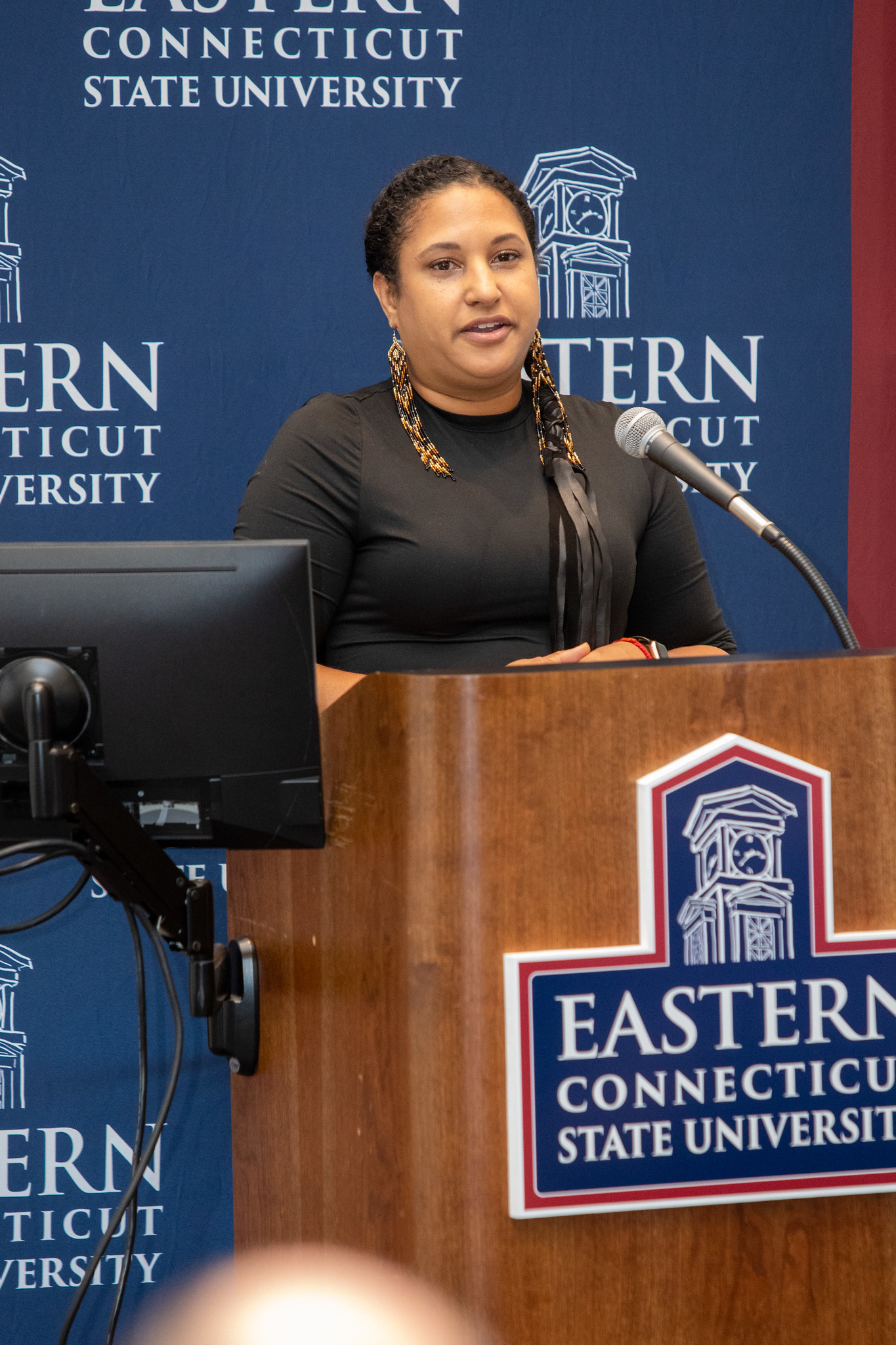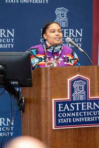 The ceremony featured additional remarks from speakers representing different Connecticut tribes. Among them was Alumna Natasha Gambrell '15 of the Eastern Pequot Tribal Nation, whose federal recognition was controversially revoked in the early 2000s.