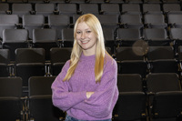 Willimantic, CT (12/02/2025) — Eastern Connecticut State University theatre major Zoe Calhoun '26 (of South Windsor, CT, and Springfield, MA) is having a big senior year. In the fall 2025 semester, she directed two university productions: a reimagination of Jean-Paul Sartre's psychological thriller "No Exit" and a stage reading of "Happening," Nobel Laureate Annie Ernaux's biographical account of getting an illegal abortion in 1960s France.