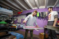 Four months later, Ryan bought the duo's first "big boy" industrial-grade press, and the two began mass-producing tie-dyed t-shirts in de Sousa's home. "It was a mess that was the catalyst toward being like, 'okay, we're in it now.'"